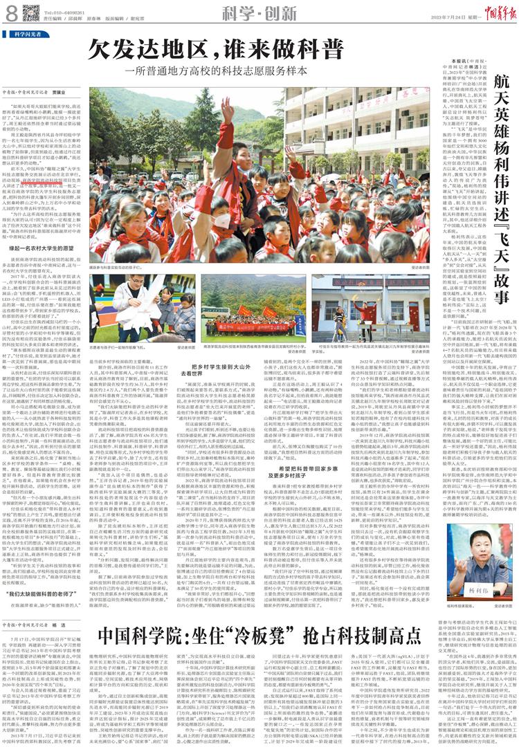 7月24日,《中國青年報》第8版以《欠發(fā)達地區(qū),誰來做科普一所普通地方高校的科技志愿服務樣本》為題,對我校流動科技館科技志愿服務項目進行了專題報道。