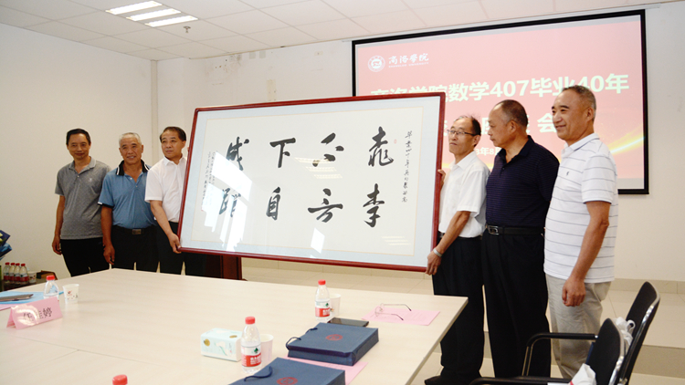 數(shù)學與計算機應(yīng)用學院書記廉明向校友們介紹了數(shù)計學院的發(fā)展狀況。校友工作處副處長任桂婷為校友們贈送了紀念品。校友代表向母校捐贈了書法作品,并向教師代表獻上鮮花。