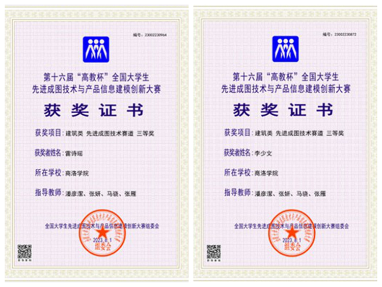 近日,第十六屆“高教杯”全國(guó)大學(xué)生先進(jìn)成圖技術(shù)與產(chǎn)品信息建模創(chuàng)新大賽全國(guó)總決賽在重慶舉行,我校建工學(xué)院城鄉(xiāng)規(guī)劃2101班雷詩(shī)瑤、2001班李少文在建筑類(lèi)先進(jìn)成圖技術(shù)賽道獲三等獎(jiǎng)2項(xiàng)。