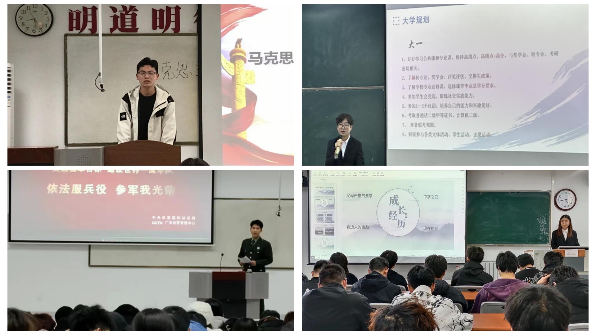 活動開展以來,各學院共選拔94名優(yōu)秀學生組成宣講團,主要圍繞專業(yè)學習、社會實踐、志愿服務(wù)、自強感恩、就業(yè)創(chuàng)業(yè)、參軍入伍、校園文化等方面開展事跡宣講。馬克思主義學院國家勵志獎學金獲得者馮佳樂向同學展示了心懷感恩、砥礪追夢的心路歷程;人文學院國家獎學金獲得者楊運任結(jié)合個人學習經(jīng)歷進行了學業(yè)規(guī)劃宣講,展現(xiàn)了昂揚奮進的進取精神;數(shù)計學院退伍學生王立強以“熱血報國少年志、青春無悔勇?lián)敗睘橹黝}講述了入伍歷程,向同學們傳遞“奮斗的青春更美麗”的信念;電信學院校級“十佳大學生”楊馨講述了自己的青春奮斗故事,闡述了志存高遠、勤勉篤行的人生態(tài)度;化材學院“互聯(lián)網(wǎng)+”大賽獲獎學生胡佳寧分享參與競賽經(jīng)歷,號召同學踴躍投身創(chuàng)新創(chuàng)業(yè)實踐;生物學院“優(yōu)秀志愿者”劉溪溪以個人志愿服務(wù)活動為主線,展現(xiàn)了行知精神與青春使命;建工學院全國師范生微課大賽二等獎獲得者張芊樺講述了專業(yè)學習引領(lǐng)個人成長的心靈感悟;經(jīng)管學院2023屆畢業(yè)生海江結(jié)合自身求職經(jīng)歷,開展職業(yè)規(guī)劃宣講,鼓勵同學不斷提升綜合素養(yǎng);藝術(shù)學院“美育活動優(yōu)秀踐行者”雷芳通過講述多姿多彩的校園活動,展現(xiàn)了青年學子的青春活力;健康學院杜雯靜分享了個人參與“三下鄉(xiāng)”實踐經(jīng)歷,勉勵同學主動深入基層,把美好青春故事寫在祖國大地上。宣講團成員的奮斗歷程和青春心聲詮釋了當代大學生將“小我”融入“大我”,傳承先進文化、練就過硬本領(lǐng),砥礪奮進、接續(xù)奮斗的良好精神風貌。