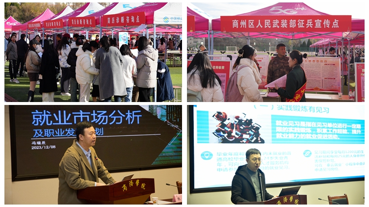 為進(jìn)一步做好2024屆畢業(yè)生就業(yè)服務(wù)工作,充分搭建畢業(yè)生與用人單位雙向選擇平臺(tái),確保畢業(yè)生更加充分、更高質(zhì)量就業(yè),12月8日,由省教育廳、省人社廳、省人才中心、省就業(yè)中心指導(dǎo),商洛市人社局、西安市人社局和我校主辦,商洛市人才中心、商洛市就業(yè)局、西安市人才中心、西安市就業(yè)中心、西安市職介中心和我校就業(yè)中心承辦的“西商融合發(fā)展”人社工作進(jìn)園區(qū)商洛學(xué)院2024屆畢業(yè)生冬季綜合類專場(chǎng)校園招聘會(huì)在我校北新街校區(qū)體育場(chǎng)順利舉辦。