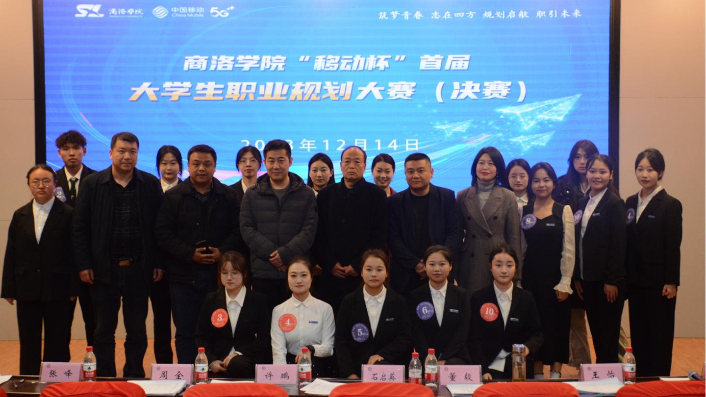 大賽邀請校人事處處長石啟英,教務處處長王怡,中國移動通信集團有限公司商洛分公司黨委委員、副總經(jīng)理許鵬,商洛市人才交流服務中心副主任董毅,商洛市人力資源和社會保障局就業(yè)科科長周全,中國移動通信集團有限公司商州分公司總經(jīng)理張峰,我校就業(yè)指導服務中心主任葉春擔任評委。