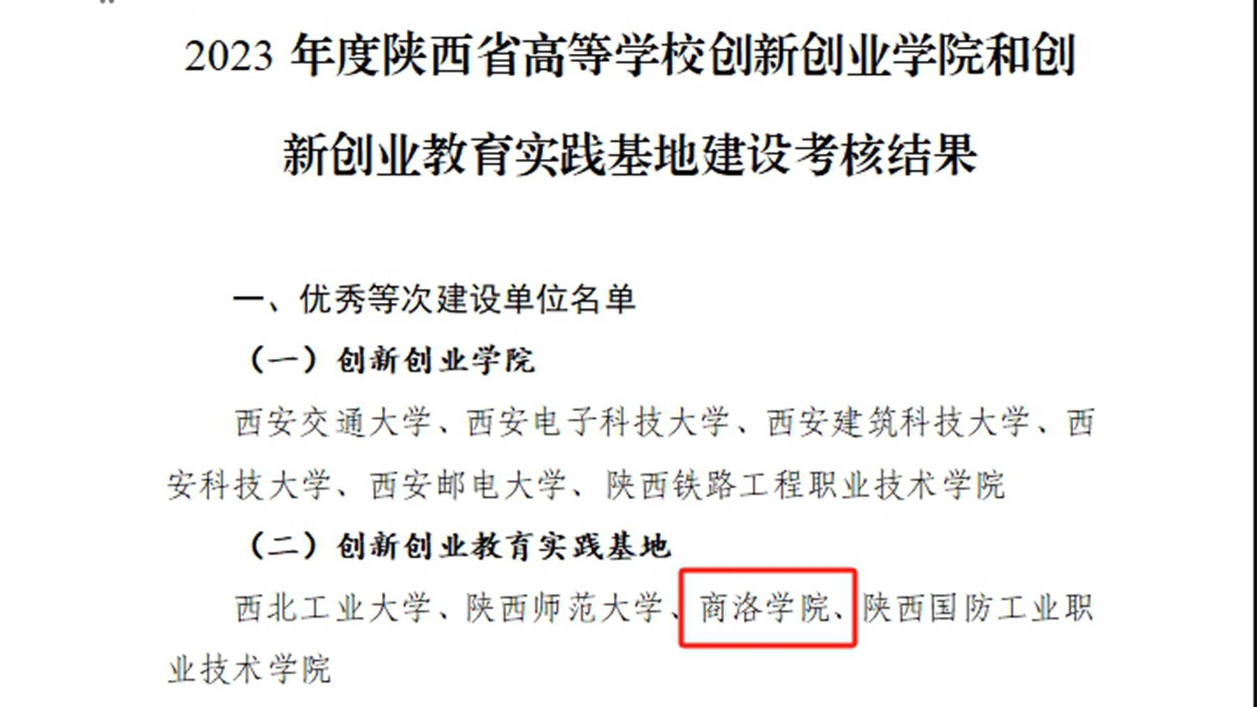 日前,陜西省教育廳公布了2023年度陜西省高等學(xué)校創(chuàng)新創(chuàng)業(yè)學(xué)院和創(chuàng)新創(chuàng)業(yè)教育實(shí)踐基地考核結(jié)果。我校省級創(chuàng)新創(chuàng)業(yè)教育實(shí)踐基地獲評考核“優(yōu)秀”等次,是此次全省唯一一所獲評優(yōu)秀等次的地方應(yīng)用型本科院校。