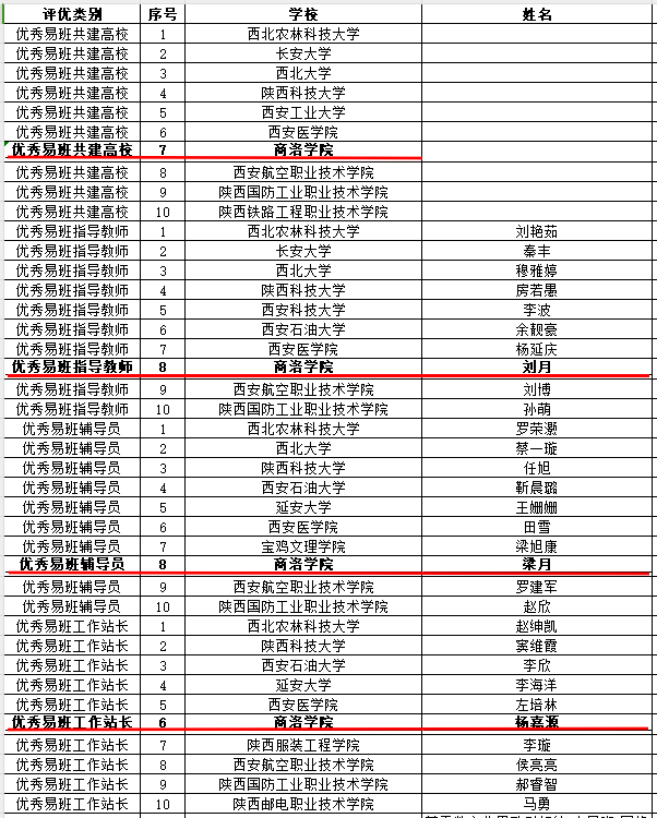 據(jù)了解,本次評(píng)優(yōu)工作經(jīng)個(gè)人申報(bào)、院校推薦、專家評(píng)審等環(huán)節(jié),共評(píng)選出年度優(yōu)秀易班共建高校10所、優(yōu)秀易班共建案例10件、優(yōu)秀易班指導(dǎo)教師10人、優(yōu)秀易班輔導(dǎo)員10人、優(yōu)秀易班工作站站長10人。我校在五個(gè)類別評(píng)選中共獲得四個(gè)類別獎(jiǎng)項(xiàng)。