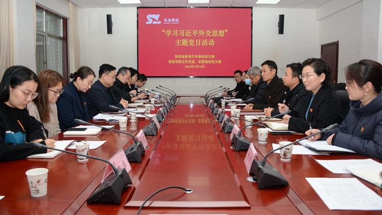 活動期間,全體黨員集體參觀了商洛紅色文化資料館,從商洛革命斗爭的輝煌歷史中感悟先輩們的崇高精神,傳承紅色基因,汲取奮進力量。文通傳達了中央外事工作會議精神。省教育廳外事處副處長、支部黨員張亮領學了《中共中央宣傳部、外交部關于認真組織學習<習近平外交思想學習綱要>的通知》文件精神,省教育廳外事處二級主任科員、支部黨員趙家悅領學了《習近平外交思想學習綱要》相關篇目。全體黨員同志認真聽取了我校馬克思主義學院楊增強教授以《習近平外交思想管窺》為題講授的黨課。