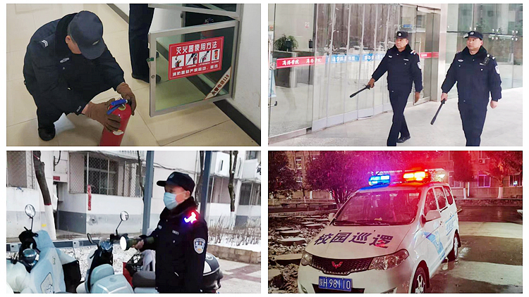 保衛(wèi)處:寒假期間,當(dāng)廣大師生和家人歡聚休息時(shí),新春佳節(jié),當(dāng)千家萬戶共享團(tuán)圓時(shí),為確保校園安全,全體保衛(wèi)干部職工和校衛(wèi)隊(duì)員毅然舍小家,顧大家,堅(jiān)守在各自工作崗位上,不懼風(fēng)雪,不畏嚴(yán)寒,以“時(shí)時(shí)放心不下”的情懷全力做好安全保衛(wèi)工作,確保校園安全穩(wěn)定,實(shí)現(xiàn)了“零發(fā)案”的目標(biāo),有效保障了全校師生度過了一個(gè)平安祥和的春節(jié)和假期。放假前,保衛(wèi)處專門下發(fā)通知,對學(xué)校寒假和春節(jié)期間安全保衛(wèi)工作進(jìn)行周密安排,要求校內(nèi)各單位認(rèn)真開展安全教育和安全檢查,切實(shí)落實(shí)各級安全責(zé)任,排除各種安全隱患,加強(qiáng)留校師生的安全管理,嚴(yán)格執(zhí)行帶班值班備勤制度,加強(qiáng)值班和信息報(bào)送,保證假期各項(xiàng)安保工作不間斷。假期當(dāng)中,保衛(wèi)處堅(jiān)持“預(yù)防為主,安全第一”原則,扎實(shí)開展校園及周邊安全檢查巡查,組織專人對各個(gè)重點(diǎn)區(qū)域開展安全隱患排查和執(zhí)勤守護(hù),按照“誰主管,誰負(fù)責(zé)”的原則督促相關(guān)單位及時(shí)整改存在問題,落實(shí)安全防范措施,嚴(yán)防各自工作區(qū)域、業(yè)務(wù)領(lǐng)域發(fā)生安全事故。保衛(wèi)處各警區(qū)和“校園110”堅(jiān)持24小時(shí)值班,隨時(shí)處置各類突發(fā)事件,監(jiān)控室對校園重點(diǎn)區(qū)域?qū)崟r(shí)進(jìn)行監(jiān)控,校衛(wèi)隊(duì)加強(qiáng)校門管控,各警區(qū)加大對校園的巡邏力度,寒假和春節(jié)期間校園安全穩(wěn)定和諧有序。