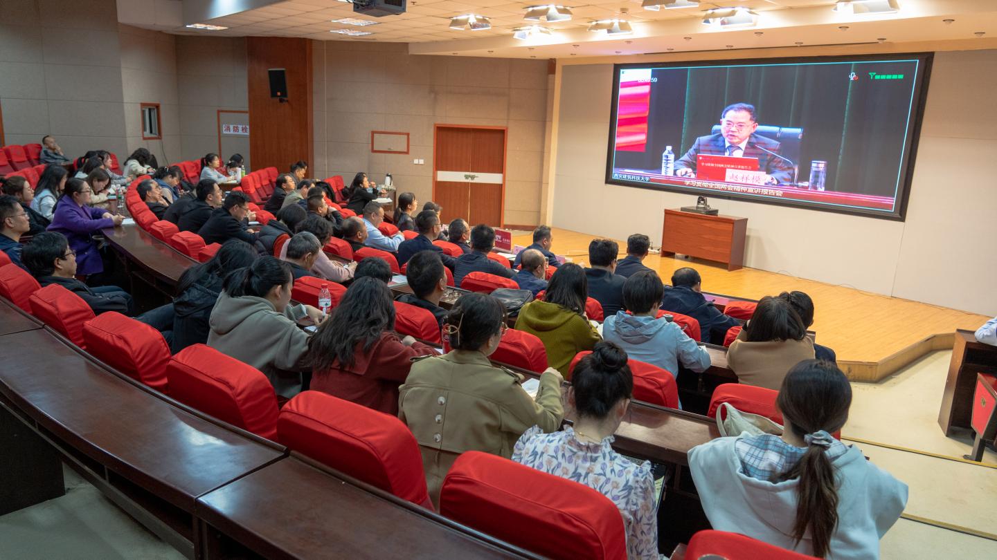 3月22日下午,省委教育工委召開全省教育系統(tǒng)全國兩會(huì)精神宣講報(bào)告會(huì),全國人大代表、西安建筑科技大學(xué)校長趙祥模為全省高校教育系統(tǒng)作全國兩會(huì)宣講報(bào)告。副校長劉寶盈,黨委辦公室、紀(jì)委、組織部、宣傳部、統(tǒng)戰(zhàn)部、團(tuán)委相關(guān)負(fù)責(zé)人,各二級(jí)學(xué)院黨委、各黨總支、直屬黨支部書記,全體思政課教師及輔導(dǎo)員代表收看了報(bào)告會(huì)。
