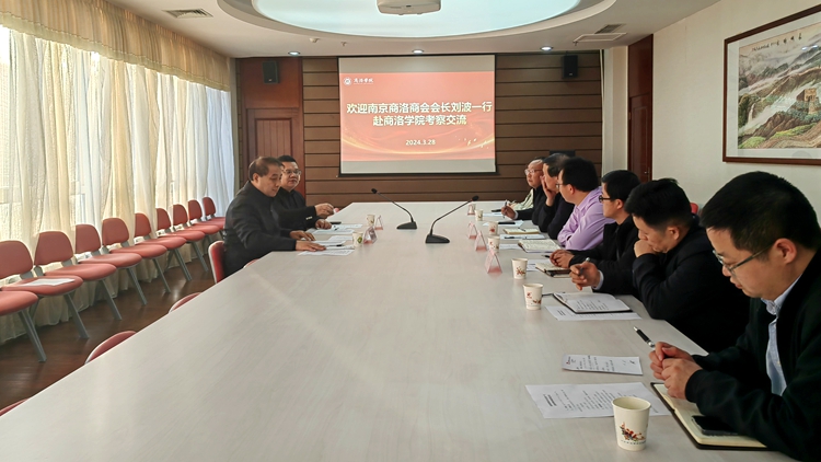 王新軍代表我校對劉波一行的到來表示歡迎,并對南京市商洛商會對我校的關(guān)心和支持表示感謝。他指出,南京市商洛商會是加強(qiáng)商洛籍南京商界人士同家鄉(xiāng)聯(lián)系溝通的紐帶和橋梁,為政府與企業(yè)、企業(yè)與企業(yè)之間聯(lián)絡(luò)搭建了平臺,極大地促進(jìn)了寧商協(xié)作交流。他希望,商會能夠充分利用其資源優(yōu)勢,為我校牽線搭橋,拓展我校與南京企事業(yè)單位的合作領(lǐng)域,在產(chǎn)教融合、實(shí)習(xí)就業(yè)、科研平臺建設(shè)等方面爭取更多合作機(jī)會,為我校應(yīng)用型人才培養(yǎng)提供更多支持,依靠寧商協(xié)作機(jī)制共同推動商洛區(qū)域科技創(chuàng)新。