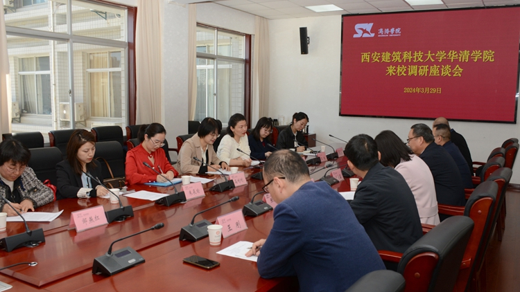 劉寶盈代表學(xué)校對西安建筑科技大學(xué)華清學(xué)院一行來訪表示熱烈歡迎,并從學(xué)科建設(shè)、專業(yè)設(shè)置、人才培養(yǎng)等方面介紹了我校的基本情況。王袁媛簡要介紹了西安建筑科技大學(xué)華清學(xué)院基本情況,并希望通過此次交流汲取經(jīng)驗,拓寬發(fā)展思路。