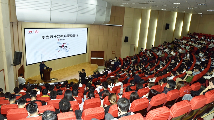 為深化我校師生對(duì)大數(shù)據(jù)及人工智能領(lǐng)域前沿技術(shù)、發(fā)展趨勢(shì)認(rèn)識(shí),助力學(xué)校數(shù)字產(chǎn)業(yè)人才培養(yǎng),4月23日,在商洛市委網(wǎng)信辦指導(dǎo)下,華為云公司在我校開展“華為云HCSD鴻蒙校園行”活動(dòng),與數(shù)計(jì)學(xué)院、電信學(xué)院、經(jīng)管學(xué)院300余名師生分享華為云及鴻蒙系統(tǒng)應(yīng)用生態(tài)。副校長(zhǎng)劉寶盈、華為陜西公司副總經(jīng)理孫偉出席活動(dòng)并致辭。商洛市委網(wǎng)信辦副主任康明亮,我校學(xué)生處、教務(wù)處、科技處、信息化建設(shè)與管理處相關(guān)負(fù)責(zé)人參加活動(dòng)。活動(dòng)由黨委委員、宣傳部部長(zhǎng)王霄飛主持。