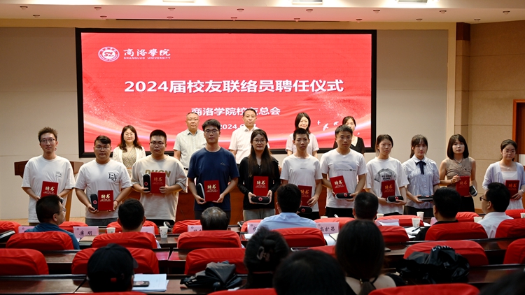 學生處處長李彥廣宣讀了《商洛學院關于聘任高紫璇等104名同學為2024屆校友聯(lián)絡員的通知》,參會領導為校友聯(lián)絡員代表頒發(fā)了聘書。