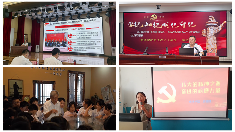 8月13日至16日,馬克思主義學(xué)院教師劉麥霞、蔣正治、楊增強(qiáng)、武曉婕、路遠(yuǎn)前往西安海關(guān),分別以《黨的二十屆三中全會精神解讀》《弘揚(yáng)偉大建黨精神 從百年黨史中汲取奮進(jìn)力量 》《加強(qiáng)黨的紀(jì)律建設(shè)、推動全面從嚴(yán)治黨向縱深發(fā)展》《做一名忠誠務(wù)實擔(dān)當(dāng)干凈的年輕干部》《重讀<共產(chǎn)黨宣言> 堅定理想信念》為題作了專題報告。自8月20日開始,馬克思主義學(xué)院武曉婕、王秀絨、彭衛(wèi)麗等教師相繼赴商洛市各中小學(xué)校,圍繞偉大建黨精神、黨史學(xué)習(xí)教育、黨紀(jì)學(xué)習(xí)教育三個主題開展系列主題宣講活動。