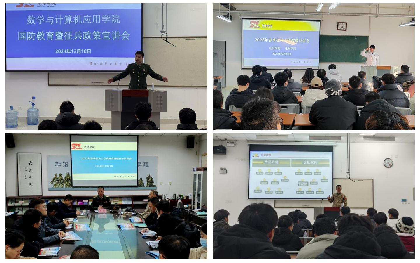 人民武裝部面向10個二級學(xué)院策劃開展了征兵工作進(jìn)學(xué)院系列宣講活動。在宣講會現(xiàn)場,退役復(fù)學(xué)大學(xué)生們激情滿懷的分享軍旅生涯,從堅守崗位的平凡職責(zé)到守衛(wèi)邊疆的神圣使命,盡顯軍人擔(dān)當(dāng)。他們用親身經(jīng)歷點燃了同學(xué)們的參軍熱情。生動的講述、珍貴的照片與視頻,有加深了同學(xué)們對軍營生活的憧憬與向往。人民武裝部教師張哲從入伍優(yōu)待政策、參軍入伍要求、應(yīng)征入伍流程簡介三個方面就征兵工作有關(guān)政策進(jìn)行了宣講,幫助同學(xué)們算好“政治賬”“成長賬”“經(jīng)濟賬”。他表示,參軍入伍不僅有利于鍛煉自己、磨練意志,也是自身未來發(fā)展規(guī)劃的重要選擇之一,他鼓勵同學(xué)們積極攜筆從戎、參軍入伍,為中國夢、強軍夢貢獻(xiàn)自己的青春力量。