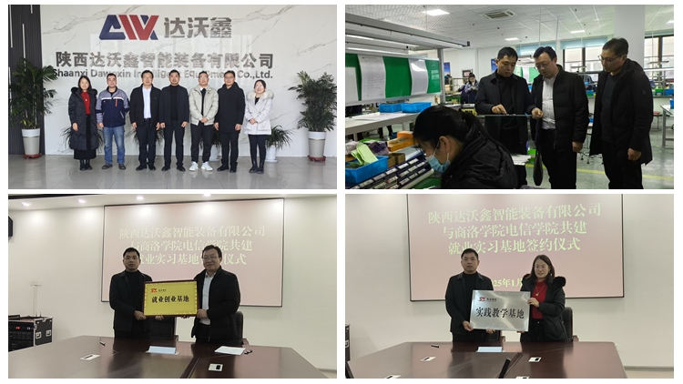 1月14日,電信學(xué)院黨委書記袁訓(xùn)鋒、副書記劉征文、副院長李亞文、學(xué)工辦主任陳倩一行前往陜西達沃鑫智能裝備有限公司走訪調(diào)研,參觀了解企業(yè)發(fā)展情況和精密滑臺生產(chǎn)車間工作,圍繞畢業(yè)生就業(yè)、人才培養(yǎng)、實習(xí)實踐、產(chǎn)教融合等方面內(nèi)容與企業(yè)深入交流。袁訓(xùn)鋒、李亞文分別代表學(xué)院同陜西達沃鑫智能裝備有限公司簽訂了就業(yè)創(chuàng)業(yè)基地協(xié)議、校外實踐教學(xué)基地協(xié)議并授牌。