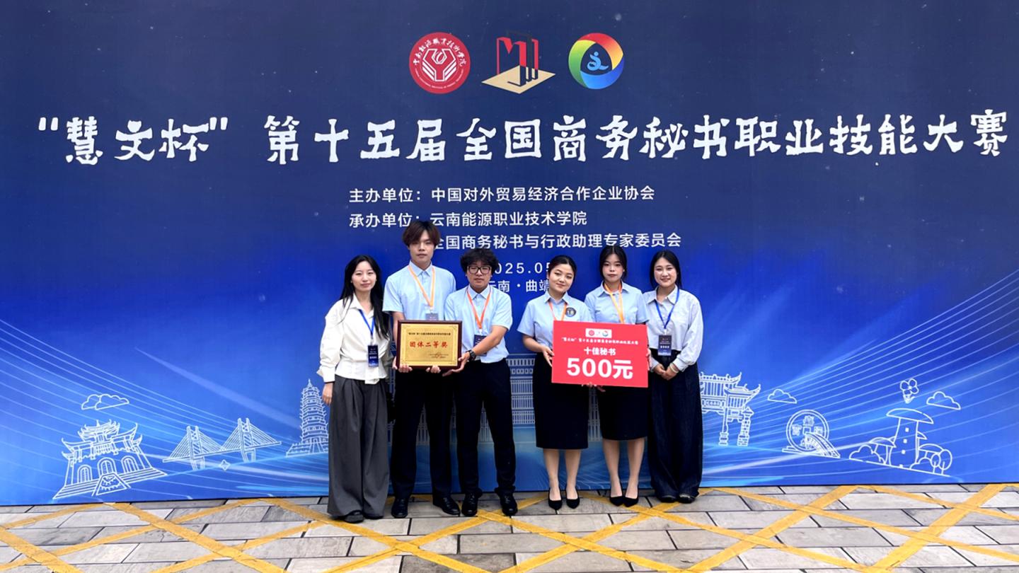 5月24日至25日,“慧文杯”第十五屆全國商務秘書職業(yè)技能大賽在云南舉行。由我校人文學院秘書系學生李瑞燕、姚佳、池一恒、任梓珩組成的參賽團隊,與來自全國66所高校的94支代表隊同臺競技,最終榮獲團體二等獎,李瑞燕榮獲“十佳秘書”稱號,李瑞燕、池一恒榮獲秘書工作專項事務處理個人三等獎。人文學院秘書系教師郭妙、李炫橋、楊曉玲被評為“優(yōu)秀指導教師”。