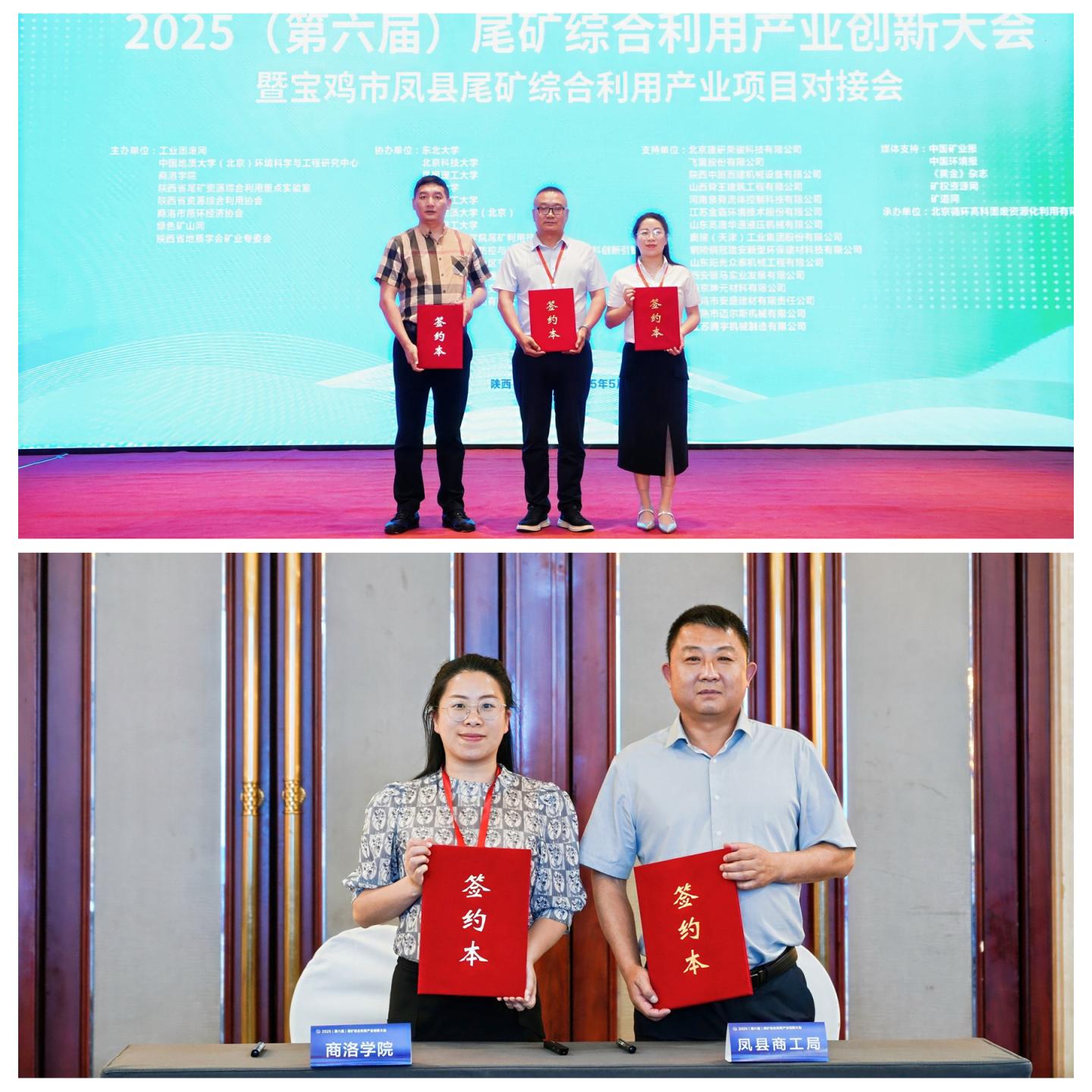 會上,曹寶月與山東高唐華通液壓機械有限公司、商洛市循環(huán)經(jīng)濟協(xié)會負責(zé)人簽訂了“大宗固廢領(lǐng)域高端智能裝備開發(fā)與示范推廣項目”校企合作協(xié)議,代表陜西省尾礦資源綜合利用重點實驗室與鳳縣商工局簽訂“尾礦綜合利用技術(shù)支持戰(zhàn)略合作協(xié)議”。