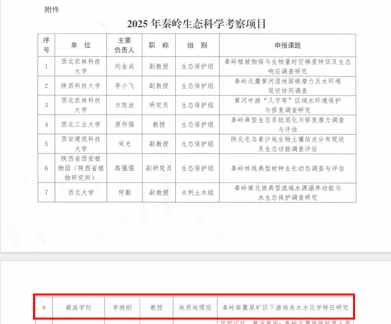 6月27日,由共青團(tuán)陜西省委、省發(fā)展改革委、省林業(yè)局共同主辦的“美麗中國·青春行動”——2025年陜西共青團(tuán)助力秦嶺生態(tài)環(huán)境保護(hù)青年志愿聯(lián)合行動主場活動在西安市鄠邑區(qū)秦嶺保護(hù)總站舉行,會上宣布了2025年秦嶺生態(tài)科學(xué)考察項(xiàng)目立項(xiàng)名單,我校建工學(xué)院、秦嶺南麓生態(tài)水文陜西省野外科學(xué)研究站李曉剛博士主持申報的《秦嶺南麓尾礦庫下游地表水水化學(xué)特征研究》獲批立項(xiàng),李曉剛和我校青年志愿者代表現(xiàn)場接受了團(tuán)省委秦嶺生態(tài)科學(xué)考察隊(duì)授旗。