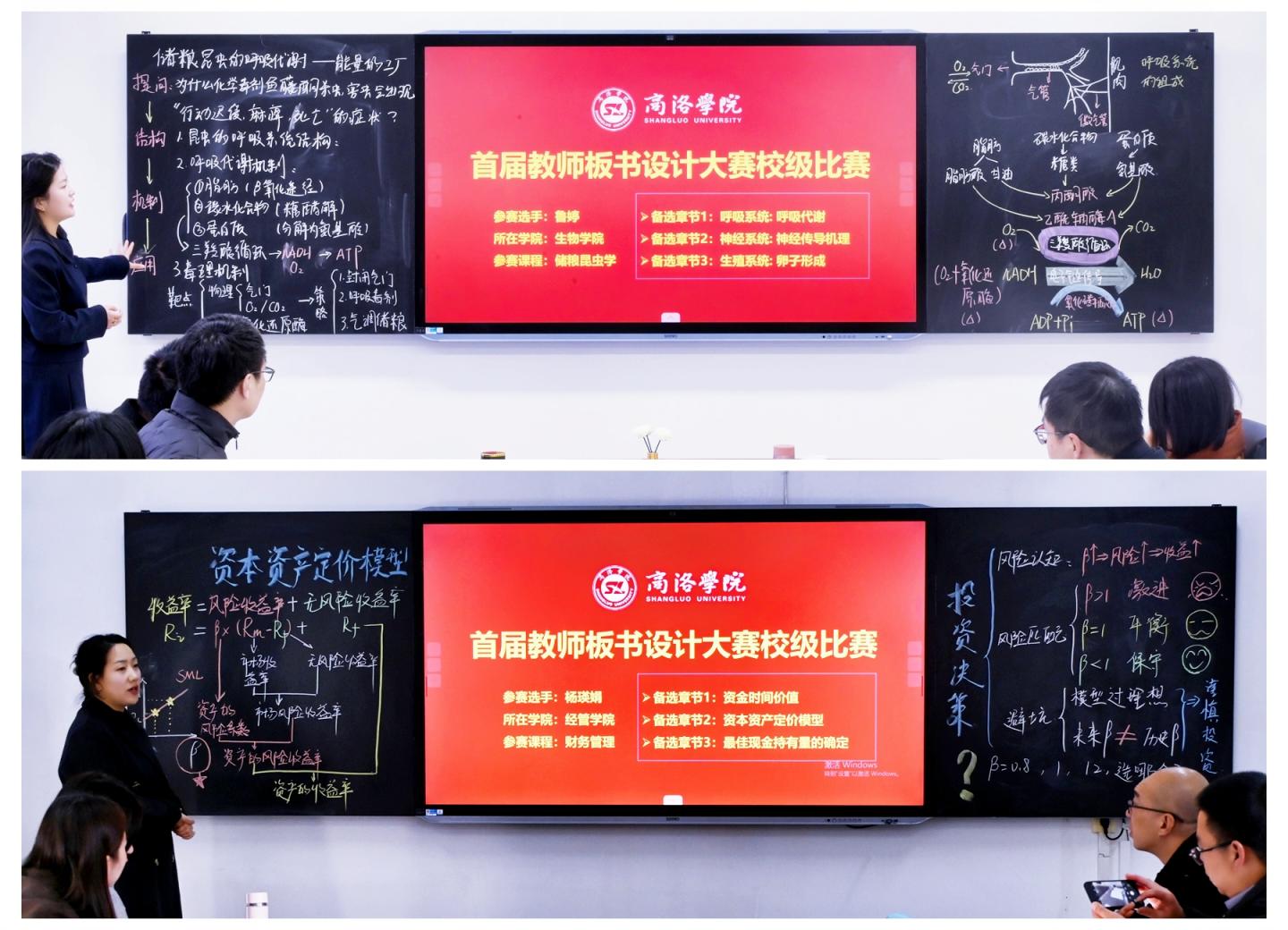 為強(qiáng)化教師教學(xué)基本功訓(xùn)練,提升教師綜合教學(xué)素養(yǎng),11月19日下午,由教務(wù)處、教師發(fā)展中心聯(lián)合主辦,教育科學(xué)學(xué)院承辦的商洛學(xué)院首屆教師板書設(shè)計(jì)大賽圓滿落幕。本次大賽特邀教務(wù)處、督導(dǎo)與評估中心、各院(部)教學(xué)院長(主任)組成評審團(tuán),對各參賽教師的板書設(shè)計(jì)進(jìn)行專業(yè)評判。