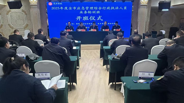 11 月 24 日上午,由商洛市應(yīng)急局主辦、商洛學(xué)院繼續(xù)教育學(xué)院承辦的商洛市2025 年度應(yīng)急管理綜合行政執(zhí)法人員業(yè)務(wù)輪訓(xùn)班在商洛學(xué)院繼續(xù)教育培訓(xùn)基地會議廳順利開班。校黨委副書記王新軍,商洛市應(yīng)急局黨委委員、副局長楊國鋒出席開班式。全市60余名應(yīng)急執(zhí)法人員參加儀式。