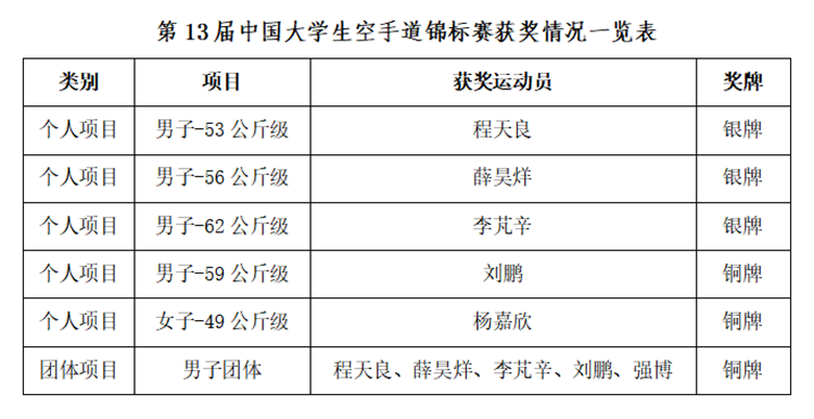 近日,在浙江省溫州市永嘉縣舉行的第13屆中國大學(xué)生空手道錦標(biāo)賽上,我??帐值来黻爦^勇拼搏、發(fā)揮出色,共獲得3枚銀牌、2枚銅牌及男子團體銅牌。隊員范思宇榮獲“優(yōu)秀運動員”稱號,體育教學(xué)研究部教師桑國鵬獲評“優(yōu)秀教練員”。