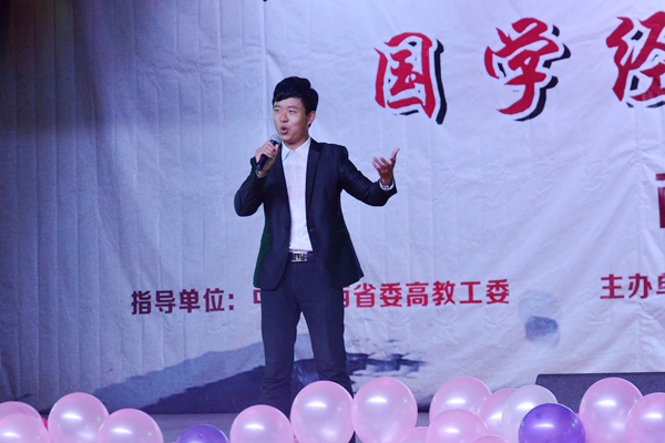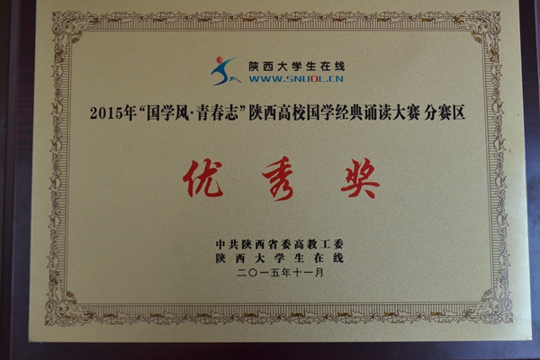 10月30日,我校師生代表參加了由陜西省委高教工委陜西大學(xué)生在線主辦的“國學(xué)風(fēng)·青春志”國學(xué)經(jīng)典誦讀賽,比賽在西安培華學(xué)院、陜西工業(yè)職業(yè)技術(shù)學(xué)院同時舉辦。全省共有16所高校33支隊(duì)伍參賽。由我校藝術(shù)學(xué)院王聰同學(xué)朗誦的《將進(jìn)酒》獲得“國學(xué)風(fēng).青春志”陜西高校經(jīng)典誦讀大賽分賽區(qū)優(yōu)秀獎。