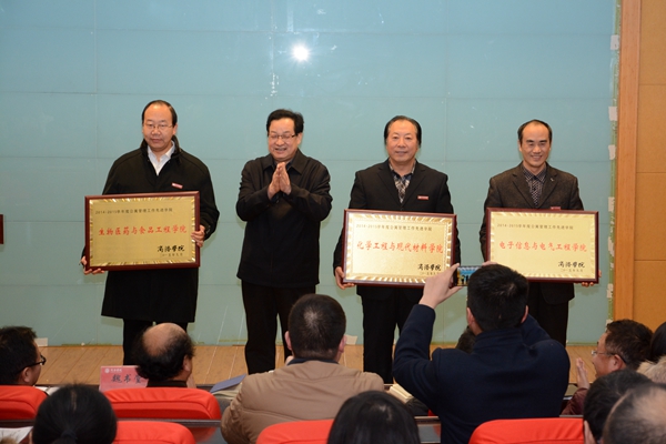 2015年,我校以“三嚴(yán)三實”專題教育為載體,以黨建為龍頭,以“三早一晚”及學(xué)風(fēng)示范工程為抓手,以大學(xué)生創(chuàng)新創(chuàng)業(yè)為突破口,不斷深化“以學(xué)生為本”的工作理念,圓滿完成了各項工作任務(wù),取得了較好成績。經(jīng)學(xué)校研究,生物醫(yī)藥與食品工程學(xué)院等3個學(xué)院被評為學(xué)生工作考核先進集體,經(jīng)濟與管理學(xué)院等3個學(xué)院被評為畢業(yè)生就業(yè)工作先進集體,化學(xué)工程與現(xiàn)代材料學(xué)院等3個學(xué)院被評為公寓管理工作先進學(xué)院,王秀絨等28人被評為優(yōu)秀班主任,張俊華等8人被評為學(xué)生管理先進個人,李川川等11人被評為學(xué)生工作考核優(yōu)秀個人,敬曉明等14人被評為公寓管理工作先進個人,張亞強等13人被評為畢業(yè)生就業(yè)工作先進個人,張善紅等6名輔導(dǎo)員和梁豐等23名班主任的工作日志被評為優(yōu)秀學(xué)生工作日志,蘇鐵柱等人的17篇論文被評為學(xué)生工作優(yōu)秀論文。
