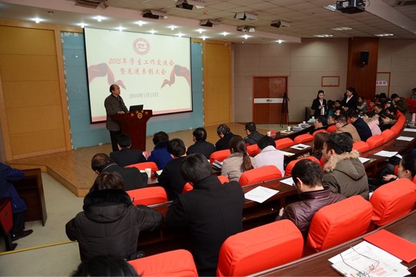 為了全面總結(jié)我校2015年度學(xué)生工作,交流學(xué)生工作研究成果和先進經(jīng)驗,為做好2016年學(xué)生工作奠定良好基礎(chǔ),1月13日,我校召開2015年學(xué)生工作交流會暨表彰大會。校黨委書記、校長劉建林出席大會并講話。副校長魏書堂宣讀了表彰決定。黨委副書記彭虎軍主持大會。大會對學(xué)生工作優(yōu)秀論文、優(yōu)秀學(xué)生工作日志、學(xué)生工作先進集體和個人進行了表彰獎勵。獲獎?wù)撐淖髡吆拖冗M集體、先進個人代表作了交流發(fā)言。