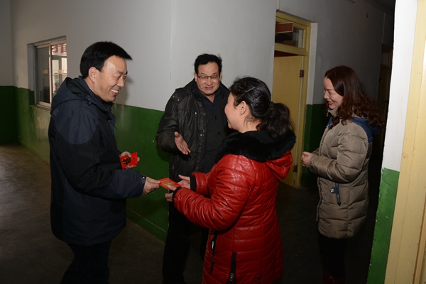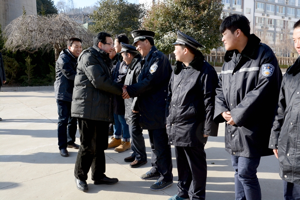 在黨政辦公室、保衛(wèi)處、后勤保障處負(fù)責(zé)人的陪同下,魏書堂、彭虎軍一行先后前往北新街校區(qū)、丹江校區(qū)各處門衛(wèi)、教學(xué)樓、公寓、圖書館、體育場值班室,后勤保障處公寓服務(wù)中心、水電班,保衛(wèi)處警務(wù)室、監(jiān)控室等一線崗位,與工作人員親切握手,代表學(xué)校黨政向大家拜年,對除夕之夜仍堅守在工作崗位上的同志表示感謝,并親手送上節(jié)日慰問品。在每一個慰問地點,校領(lǐng)導(dǎo)都詳細(xì)詢問了各部門的工作情況,要求每位工作人員在春節(jié)期間一定要把安全穩(wěn)定放在首位,保證全校師生度過一個溫暖、祥和的春節(jié)。
