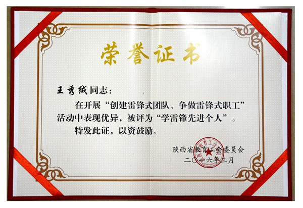 根據(jù)日前陜西省教育工會委員會下發(fā)的《關(guān)于“創(chuàng)建雷鋒式團隊、爭做雷鋒式職工”活動的表彰決定》,我校工會評選并推薦的人文社會科學(xué)學(xué)院心理服務(wù)志愿者團隊、人文社會科學(xué)學(xué)院歷史系主任王秀絨兩個學(xué)雷鋒先進典型,分別獲得陜西省高?!皠?chuàng)建雷鋒式團隊、爭做雷鋒式職工”活動學(xué)雷鋒先進集體、先進個人榮譽稱號。