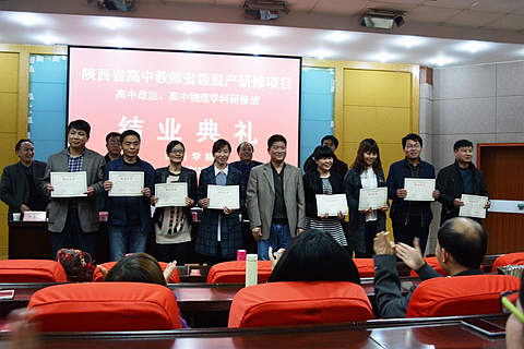 3月28日,我校承辦的陜西省高中教師省級脫產(chǎn)研修項目高中政治學(xué)科、高中物理學(xué)科研修班結(jié)業(yè)。校黨委副書記、副校長、學(xué)校省培領(lǐng)導(dǎo)小組組長范新會,繼續(xù)教育學(xué)院院長、校省培領(lǐng)導(dǎo)小組副組長任少儉,后勤保障處副處長敬曉明等出席結(jié)業(yè)典禮。結(jié)業(yè)典禮由繼續(xù)教育學(xué)院副院長任新山主持。
