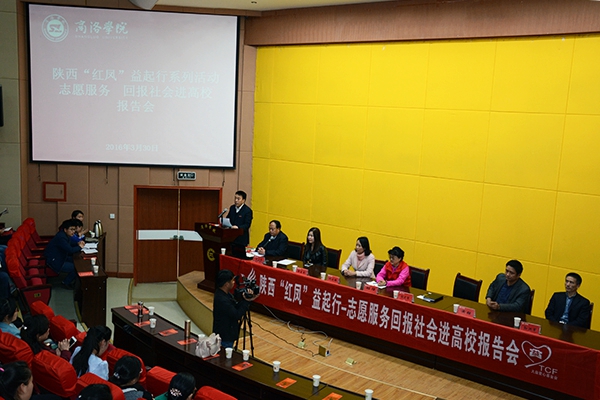 3月30日下午,“陜西紅鳳益起行——志愿服務(wù) 回報社會進高校”報告會在我校舉行。校黨委副書記彭虎軍,陜西紅鳳志愿者協(xié)會創(chuàng)辦人班理,商洛市婦聯(lián)副主席閆莉娜,商洛市文明辦副主任黃強,學(xué)校青年志愿者協(xié)會成員,報告團成員李麥青、孫洪軍以及巾幗志愿者代表,商洛市女企業(yè)家協(xié)會代表,在?!凹t鳳工程”受助生,我校輔導(dǎo)員、學(xué)生代表等450余人聆聽了報告。報告會由學(xué)工部部長石啟英主持。