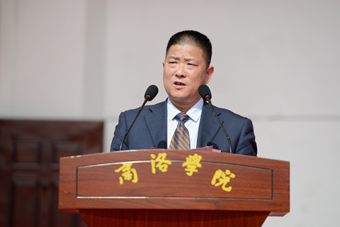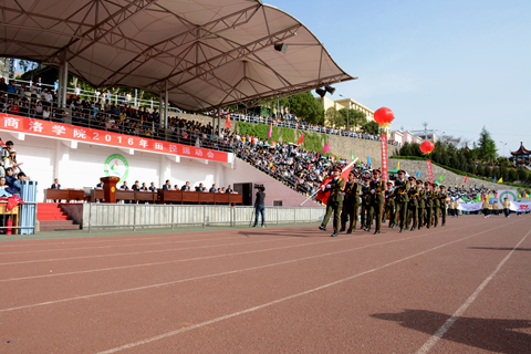 范新會在致辭中指出,體育是文明的標志,學校體育是實施素質教育,培養(yǎng)中國特色社會主義事業(yè)合格建設者和接班人的具體行動。一年來,我校認真實施《普通高等學校體育課程指導綱要》,加強體育教學工作。不斷加強體育師資隊伍建設,加大經費投入,加強體育活動組織,積極推動校園陽光體育和全民健身的開展,當前校園內已經形成濃厚的校園體育鍛煉氛圍。本屆運動會是我校在進入“穩(wěn)基、提質、增速,創(chuàng)新驅動發(fā)展”之際舉行的一次體育盛會,也是學校在全面進入本科教育階段的第一次運動會。運動會的召開,既是對我校一年來體育教學工作的一次大檢閱,也是對我校師生精神面貌和身體素質的一次大檢閱,更是我校師生運動專長及運動風采的一次大比武,必將對進一步宣傳、普及和弘揚體育運動精神,激勵師生以更加奮發(fā)向上的精神狀態(tài)投身于教學、科技與創(chuàng)新、管理與服務等各項工作,推動學校各項事業(yè)可持續(xù)發(fā)展,起到積極的促進作用。他希望廣大師生員工積極參加全民健身活動,成為陽光體育運動實踐者和骨干先鋒,也希望廣大參賽運動員尊重裁判、尊重對手、尊重觀眾,賽出精神文明建設的豐碩成果,賽出運動訓練的競技水平。