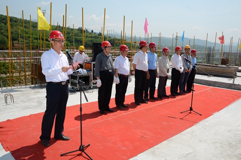 黨委書記、校長劉建林在講話中指出,綜合教學(xué)樓工程自2015年開工以來,在各參建單位的共同努力及其他相關(guān)單位的關(guān)心及支持下,克服了工期緊迫、工藝復(fù)雜、施工難度大、質(zhì)量要求高等諸多困難,經(jīng)過一年的艱苦奮戰(zhàn),順利實(shí)現(xiàn)了工程封頂?shù)哪繕?biāo)。希望相關(guān)單位以主體封頂為契機(jī),進(jìn)一步抓好工程質(zhì)量及后期工程的有序安排,確保工程如期竣工投入使用,為推動(dòng)我校的基礎(chǔ)設(shè)施建設(shè)水平的全面提升做出貢獻(xiàn)。