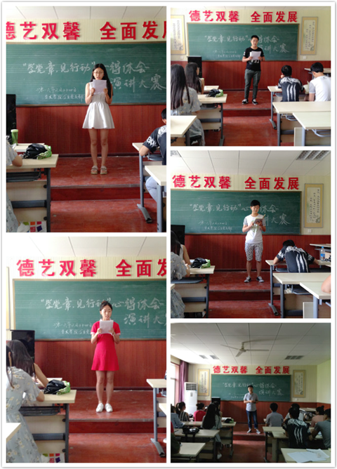 “學(xué)黨章,見行動”心得體會演講大賽。6月24日,學(xué)生第一、第二黨支部全體成員學(xué)習(xí)《習(xí)近平總書記在哲學(xué)社會科學(xué)工作座談會上的講話》等內(nèi)容,開展主題演講,用實際行動踐行“兩學(xué)一做”,向黨的生日獻(xiàn)禮。