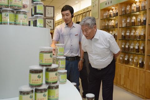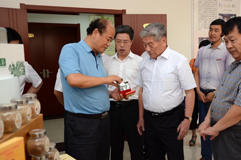 在植物學(xué)優(yōu)勢(shì)學(xué)科展室,趙鵬大院士詳細(xì)了解了我校培育的小麥新品種和現(xiàn)代中藥產(chǎn)品,品嘗了我校開(kāi)發(fā)的“商山養(yǎng)生紅”保健酒。他建議我校深入研究整理商洛區(qū)域土壤水質(zhì)特性,有針對(duì)性地研發(fā)具有地域特色的良種和農(nóng)藥、肥料等產(chǎn)品。
