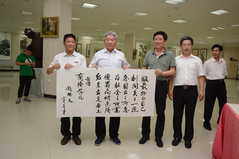 在藝術(shù)展廳,趙鵬大院士揮毫為我校題字:做最好的自己,創(chuàng)同類之一流,急國家之所急,為社會(huì)之所需,境界高特色強(qiáng),后來者定居上。
