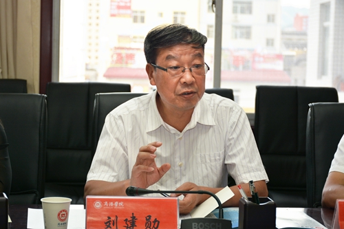 劉建林代表學(xué)校對(duì)劉建勛一行來(lái)??疾旖涣鞅硎練g迎,并向客人們介紹了我校的歷史沿革、辦學(xué)定位與辦學(xué)方向、辦學(xué)格局與學(xué)科專(zhuān)業(yè)、辦學(xué)特色與服務(wù)地方成就和師資隊(duì)伍建設(shè)情況。劉建林表示,我校四十年勵(lì)精圖治,升本十年風(fēng)雨兼程,近年來(lái)厚積薄發(fā),當(dāng)前,學(xué)校面臨著全面實(shí)施本科教育,構(gòu)建“穩(wěn)基提質(zhì)增速,創(chuàng)新驅(qū)動(dòng)發(fā)展”新常態(tài),爭(zhēng)創(chuàng)一流應(yīng)用型本科院校三大任務(wù)。學(xué)校將大力實(shí)施“十大人才工程計(jì)劃”和“323211工程”,深化人事制度改革,營(yíng)造“想干事、愿干事、能干事、干成事”的良好氛圍。