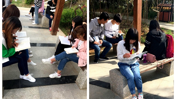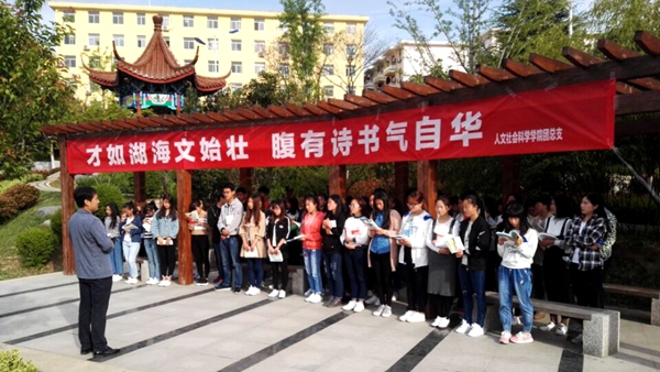 4月23日,人文社會科學(xué)學(xué)院2016級思想政治教育專業(yè)全體學(xué)生來到竹園進行晨讀。