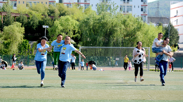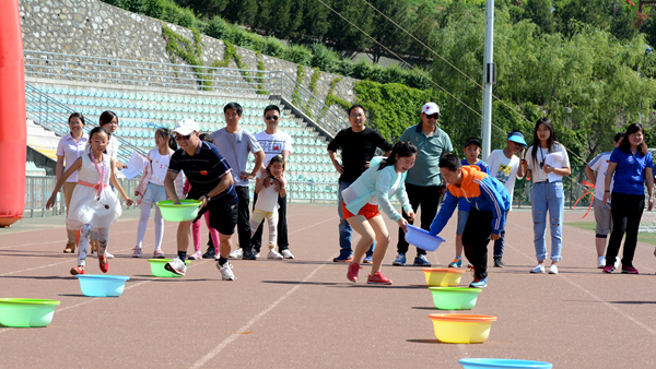 5月28日上午,蔚藍的天空,艷陽高照,歡快的兒童歌曲回響在我校體育場上空,校園一派歡樂的景象。由工會、體育教學部舉辦的“慶六一”親子家庭趣味運動會在這里舉行,我校170個家庭參加運動會。