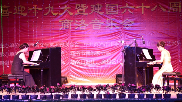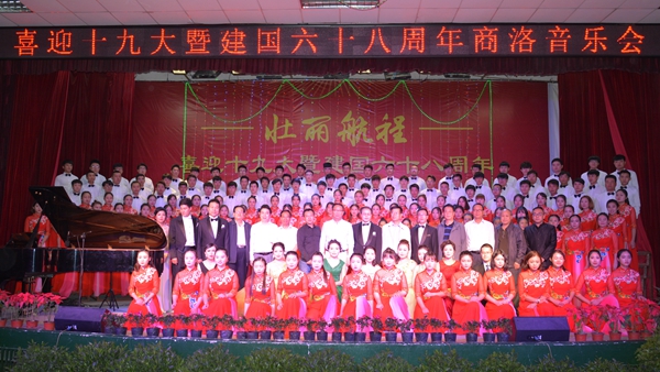9月28日晚,由陜西省文學(xué)藝術(shù)界聯(lián)合會(huì)、中共商洛市委宣傳部、商洛市文學(xué)藝術(shù)界聯(lián)合會(huì)主辦,我校藝術(shù)學(xué)院、商洛市音樂家協(xié)會(huì)承辦的,以“壯麗航程”為主題的喜迎十九大暨建國68周年商洛音樂會(huì)在我校大學(xué)生活動(dòng)中心上演。校領(lǐng)導(dǎo)龍治剛、王思懷、魏書堂、劉寶盈,省文聯(lián)組聯(lián)部副主任趙光遠(yuǎn)、趙長川,商洛市政協(xié)副秘書長楊平安、郭毅,商洛市委宣傳部副部長、市文明辦主任李丹峰,商洛市人大常委會(huì)教科文衛(wèi)工委主任郭菊賢,商洛日?qǐng)?bào)社副總編輯趙有良,商洛市文廣新局副局長王勁,市文聯(lián)黨組書記王良、專職副主席李志華,商洛市音樂家協(xié)會(huì)主席林宏彥、市青年作協(xié)主席馮玲子同商洛市音樂屆人士、我校處級(jí)領(lǐng)導(dǎo)干部、師生代表一同觀看了晚會(huì)。