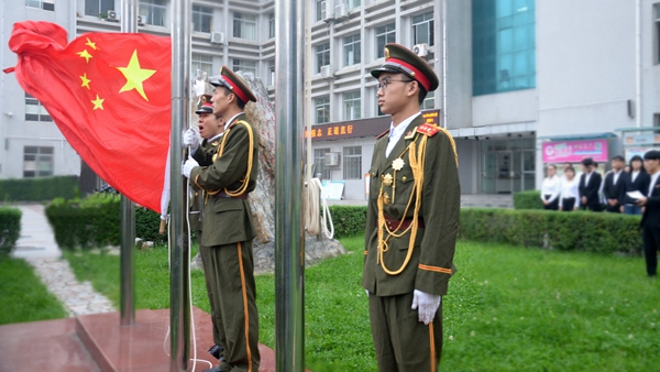 旗手們踏著矯健的步伐,莊嚴(yán)地護(hù)送五星紅旗走向升旗臺(tái)。在莊嚴(yán)嘹亮的國(guó)歌聲中,鮮艷的五星紅旗冉冉升起,全體人員肅立向國(guó)旗行注目禮,齊聲高唱國(guó)歌,為祖國(guó)母親獻(xiàn)上最真摯的祝福。