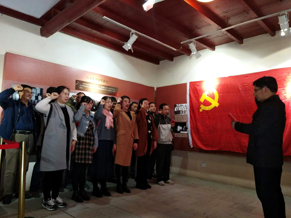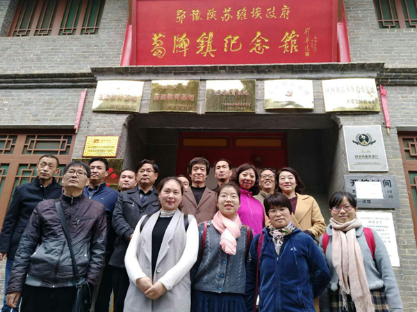 為進一步學習貫徹黨的十九大精神,提高馬克思主義學院全體教師的思想政治水平,11月4日,馬克思主義學院全體教師赴藍田鄂豫陜蘇維埃政府葛牌鎮(zhèn)紀念館和九間房鎮(zhèn)汪峰故居開展“不忘初心、牢記使命”主題社會實踐活動,將兩處紅色遺跡確立為“思政教師社會實踐研修基地”和“思想政治理論課第二課堂”,并舉行了掛牌儀式。全體教師在黨旗面前重溫入黨誓詞,深切感悟作為一個共產(chǎn)黨人不能忘記的“初心”和必須牢記的“使命”。