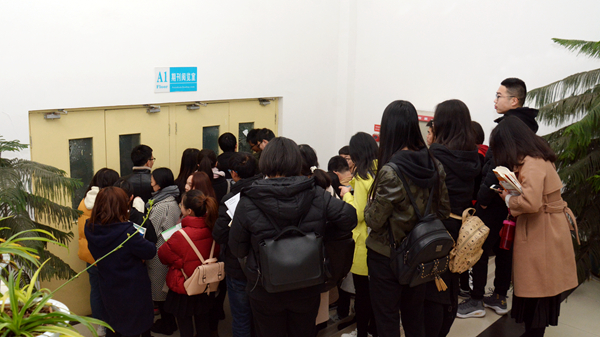 勤奮的莘莘學(xué)子早早到來,等候圖書館開放。
