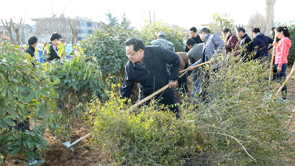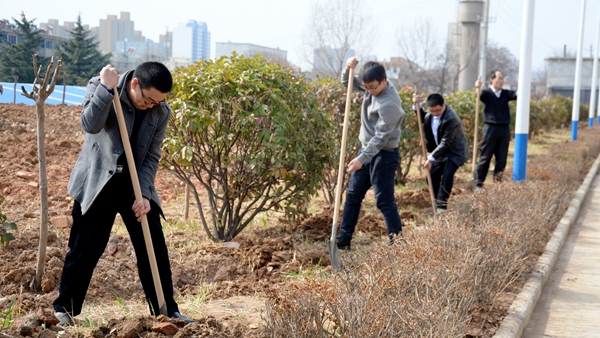 下午2:00,黨員們準(zhǔn)時(shí)來(lái)到新建綜合教學(xué)樓前,挖坑、植苗、培土,大家歡聲笑語(yǔ),氣氛熱烈,分工合作,配合默契。不知不覺(jué)一個(gè)下午過(guò)去了,大家植樹(shù)種花1000余棵,牡丹園、月季園基本建成,紫薇成行,碧桃成簇,石楠郁郁蔥蔥,校園頓覺(jué)春意盎然。