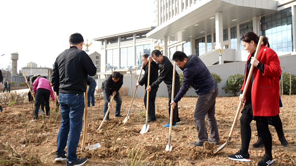 陽(yáng)春三月,草長(zhǎng)鶯飛,正是植樹(shù)好時(shí)節(jié)。3月1日下午,機(jī)關(guān)一、機(jī)關(guān)二黨總支組織黨員開(kāi)展了“為校園添綠”主題黨日活動(dòng)。副校長(zhǎng)魏書(shū)堂與機(jī)關(guān)80余名黨員在新建綜合樓前栽樹(shù)種花,綠化校園。后勤保障處全體職工、機(jī)關(guān)部分民主黨派成員及職工參加活動(dòng)。