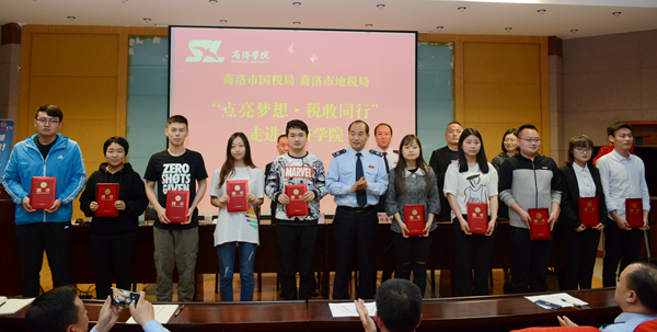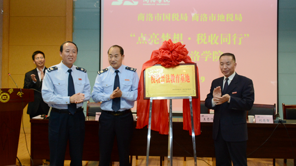 在第27個全國稅收宣傳月到來之際,為了宣傳普及稅法知識,增強師生稅法意識,4月19日,商洛市國稅局、商洛市地稅局聯(lián)合開展的“點亮夢想?稅收同行”稅法宣傳活動走進我校。紀委書記王思懷,市國稅局副局長劉存智,市地稅局副局長馮書云出席活動。我校宣傳部、財務處、經(jīng)管學院負責人及相關人員,國稅、地稅干部,經(jīng)管學院師生代表150余人參加活動。