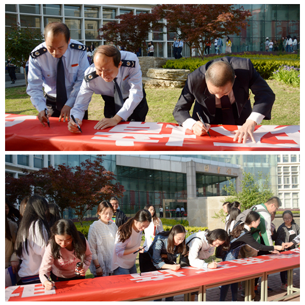 聽完講座后,師生們紛紛在“優(yōu)化稅收營商環(huán)境 助力經(jīng)濟高質量發(fā)展”宣傳橫幅上簽名,表達自己爭做守法納稅人的決心。
