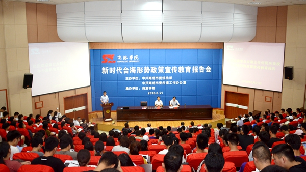 6月21日,由中共商洛市委統(tǒng)戰(zhàn)部、中共商洛市委臺(tái)灣工作辦公室主辦,我校承辦的新時(shí)代臺(tái)海形勢(shì)政策宣傳教育報(bào)告會(huì)在我校召開(kāi)。陜西省委臺(tái)辦副主任、臺(tái)海問(wèn)題研究資深專家、省臺(tái)辦新聞發(fā)言人何銳作了專題報(bào)告。副校長(zhǎng)劉勇出席報(bào)告會(huì),市工商聯(lián)、市僑聯(lián)、市外僑辦、分管統(tǒng)戰(zhàn)和對(duì)臺(tái)工作的領(lǐng)導(dǎo)同志、市委統(tǒng)戰(zhàn)部和市委臺(tái)辦機(jī)關(guān)的全體干部、我校師生代表,共計(jì)500余人參加報(bào)告會(huì)。會(huì)議由商洛市政協(xié)副主席周青海主持。