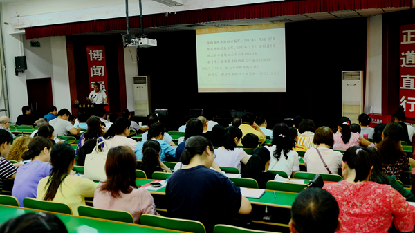 為了進(jìn)一步學(xué)習(xí)貫徹黨的十九大精神,把“初心”和“使命”融入到教育教學(xué)工作的各個(gè)方面,6月21日,我校圖書(shū)館直屬黨支部,機(jī)關(guān)一黨總支第一黨支部、第二黨支部,繼續(xù)教育學(xué)院直屬黨支部,馬克思主義學(xué)院黨總支,人文學(xué)院黨總支聯(lián)合舉辦了“不忘初心、牢記使命”慶七一專(zhuān)題報(bào)告會(huì)。報(bào)告會(huì)由校紀(jì)委副書(shū)記劉端森教授主持。