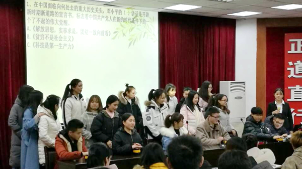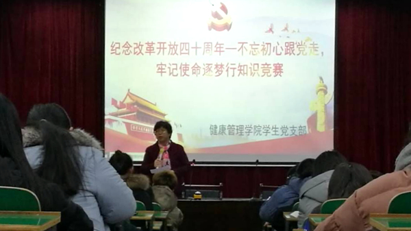 為慶祝改革開放40周年,深入學(xué)習(xí)宣傳黨的十九大精神,激發(fā)學(xué)生黨員飲水思源的感恩意識和開拓創(chuàng)新的進(jìn)取精神,12月17日晚,健康管理學(xué)院舉辦了“不忘初心跟黨走 牢記使命逐夢行”主題知識競賽。該院黨總支負(fù)責(zé)人,學(xué)生黨員、發(fā)展對象、積極分子和入黨申請人200余人參加活動(dòng)。